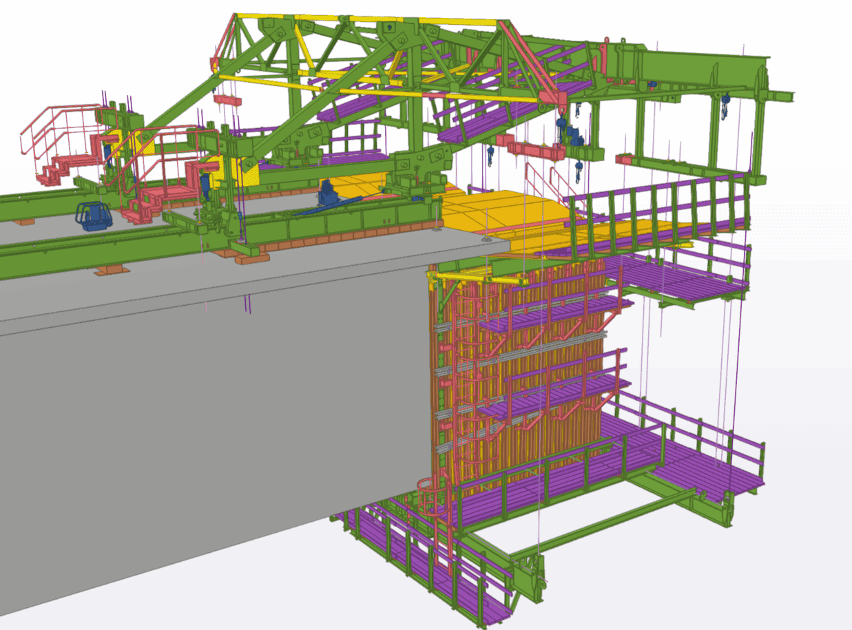 The external formwork of this type of Form Traveller is supported by the main structure, leaving enough room to install the pre-assembled rebar cage. When the rebar cage is pre-assembled, the Strukturas Underslung Form Traveller is the perfect choice.