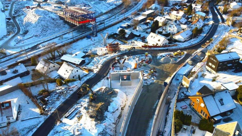 There is thus no need for a separate safety culvert over the railway, and train traffic can run while the biggest part of the concrete works is in progress.